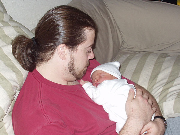 Justin, attempting to scale Chad's shirt, pauses for a nap.
