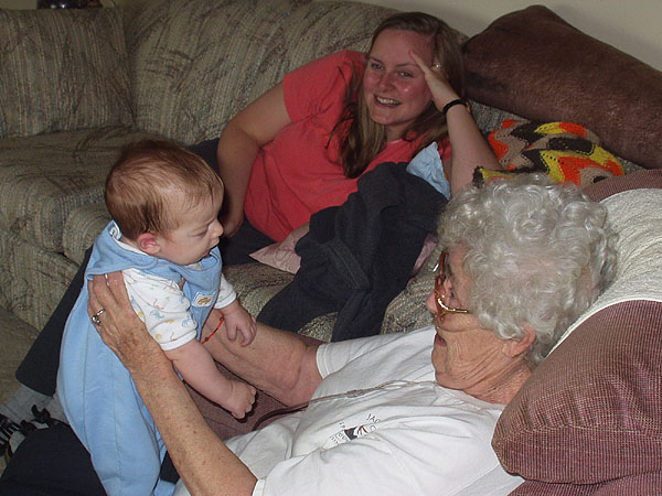 Julie, Justin, and Great Grandma Birdie.