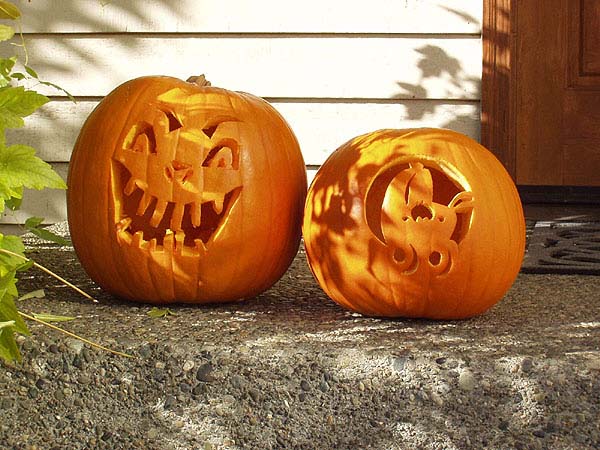 Mommy's scary pumpkin face with Justin's first Jack-O-Lantern (a baby carriage - how cute! Great work, Daddy!)