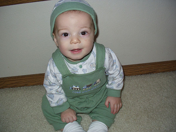 Here I'm modeling my green overalls from Gma Lougheed.