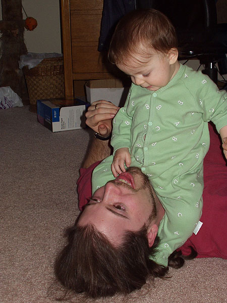 Pinned! The vice-like grip of baby legs rivals that of a boa constrictor.