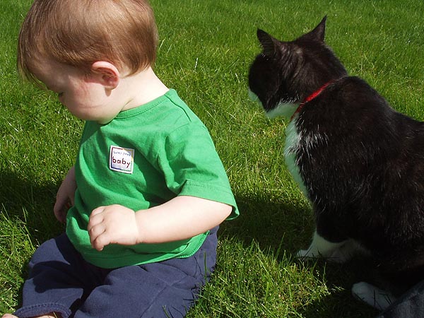 Justin hanging out with Rambo in the backyard.