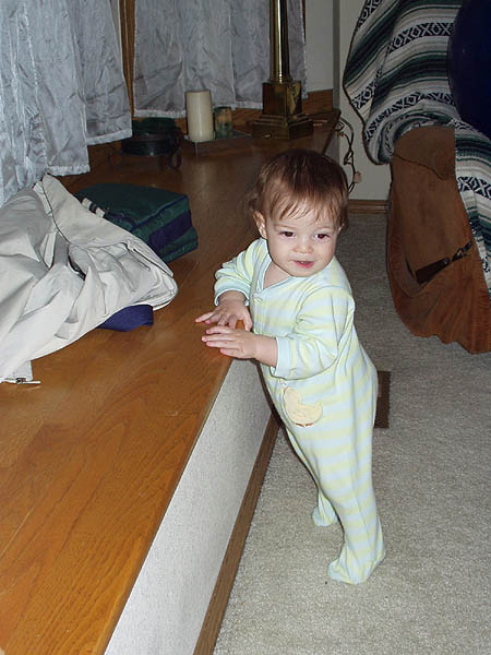 Now that I've got that standing thing down, I'm learning to furniture-walk.