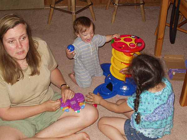 Playing with new toys with Mommy and Cousin Shanae.