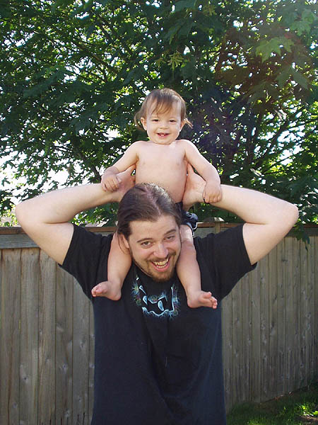 I feel so tall up here on Daddy's shoulders!