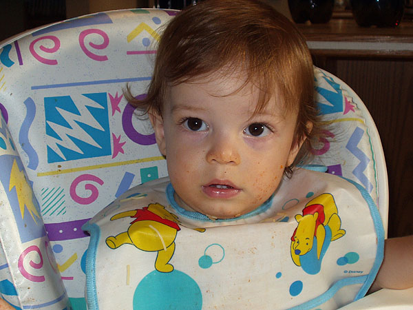 Justin looking cute after a meal.